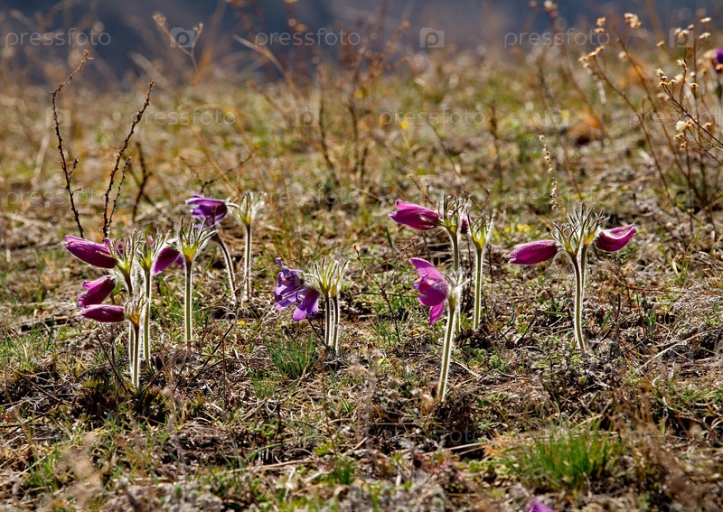 Россия. Юг Западной Сибири. Прострел раскрытый (Сон-трава) - первые весенние цветы на каменистых склонах горного Алтая