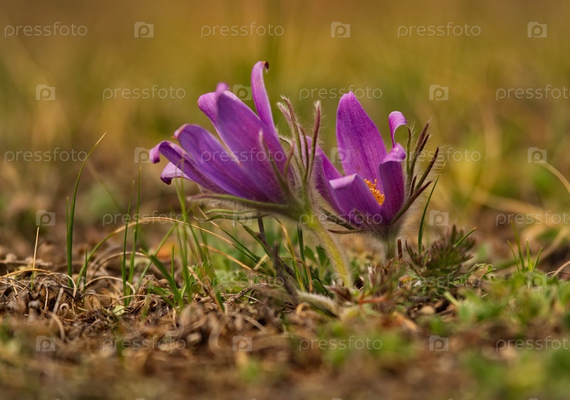 Россия. Юг Западной Сибири. Прострел раскрытый (Сон-трава) - первые весенние цветы на каменистых склонах горного Алтая