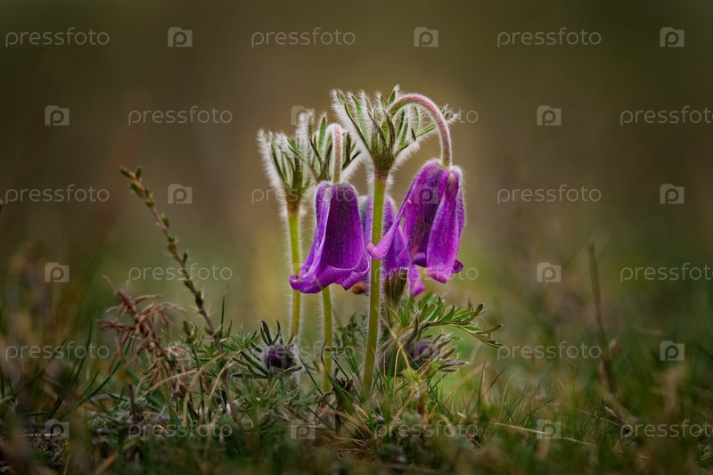 Россия. Юг Западной Сибири. Прострел раскрытый (Сон-трава) - первые весенние цветы на каменистых склонах горного Алтая