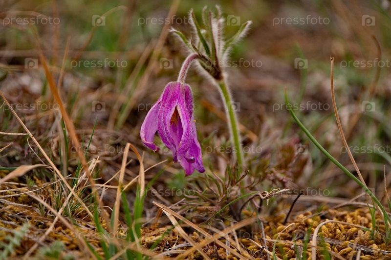 Россия. Юг Западной Сибири. Прострел раскрытый (Сон-трава) - первые весенние цветы на каменистых склонах горного Алтая