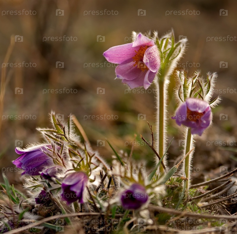 Россия. Юг Западной Сибири. Прострел раскрытый (Сон-трава) - первые весенние цветы на каменистых склонах горного Алтая