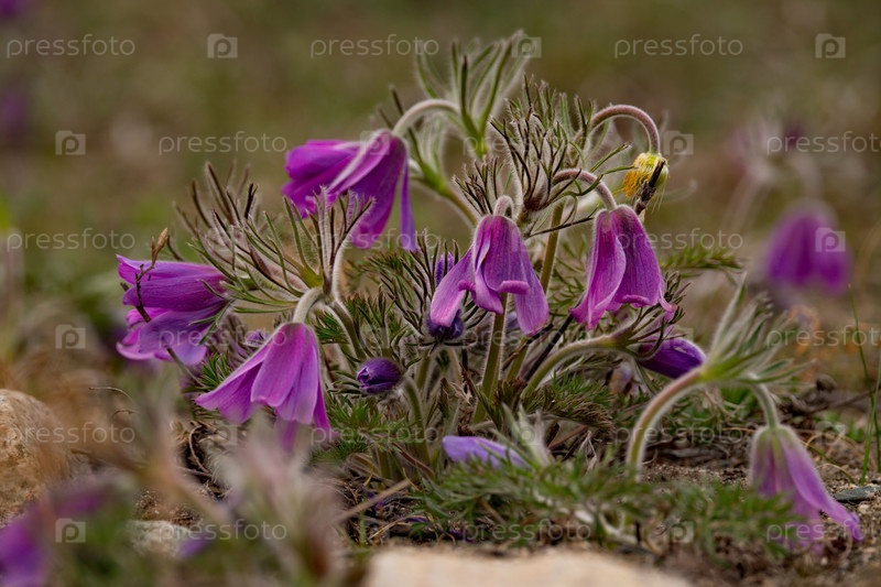 Россия. Юг Западной Сибири. Прострел раскрытый (Сон-трава) - первые весенние цветы на каменистых склонах горного Алтая