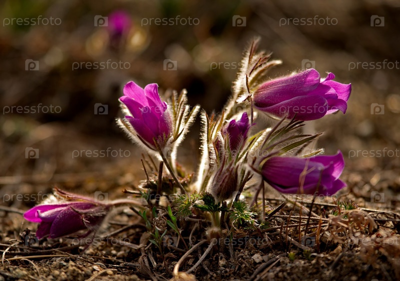 Россия. Юг Западной Сибири. Прострел раскрытый (Сон-трава) - первые весенние цветы на каменистых склонах горного Алтая