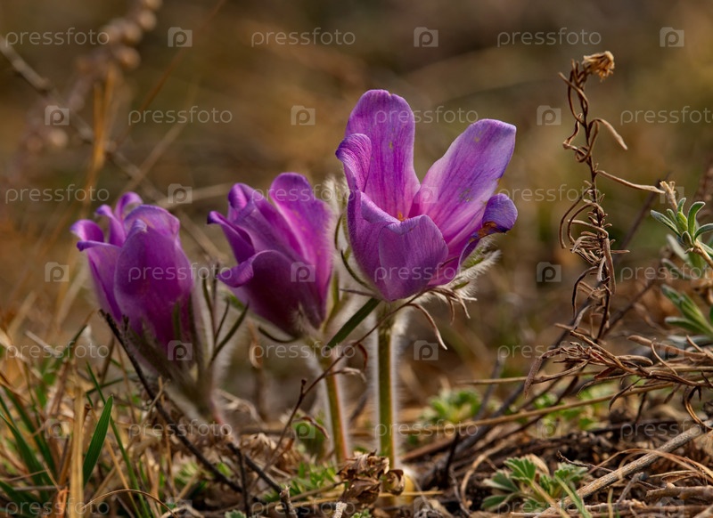 Россия. Юг Западной Сибири. Прострел раскрытый (Сон-трава) - первые весенние цветы на каменистых склонах горного Алтая