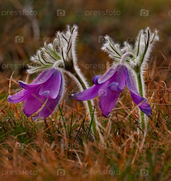 Россия. Юг Западной Сибири. Прострел раскрытый (Сон-трава) - первые весенние цветы на каменистых склонах горного Алтая