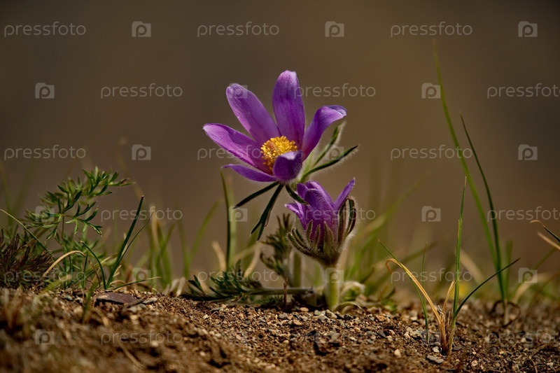 Россия. Юг Западной Сибири. Прострел раскрытый (Сон-трава) - первые весенние цветы на каменистых склонах горного Алтая