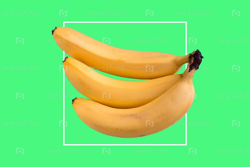 Абстрактное изображение банана на светло-зеленом фоне со светящейся рамкой