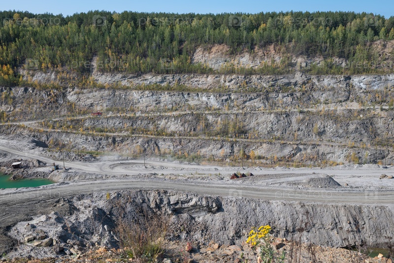 Производство графита. Глубокий карьер по добыче полезных ископаемых