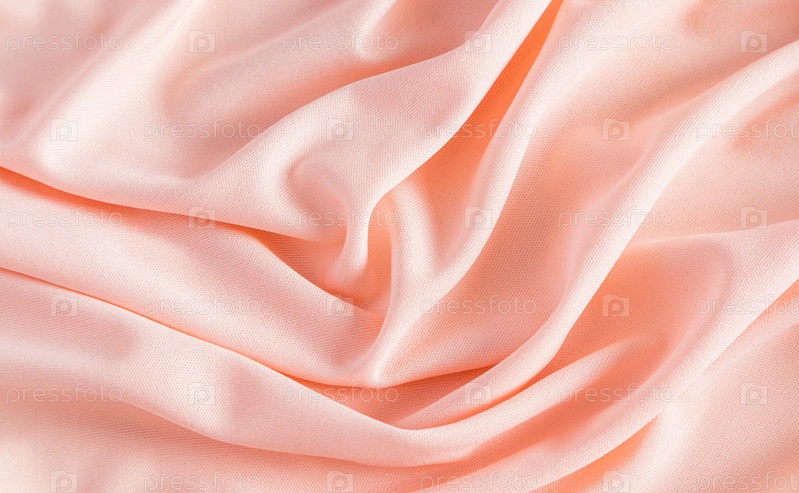 Элегантная атласная ткань персикового цвета. роскошная текстура мягких складок. праздничный фон. дизайн. цвет года персиковый пух