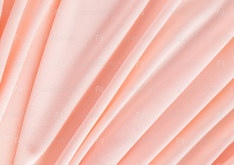 Элегантный текстильный фон персикового цвета с мягкими складками. Праздничный фон цвета персикового пуха 2024 года. Копировальное пространство