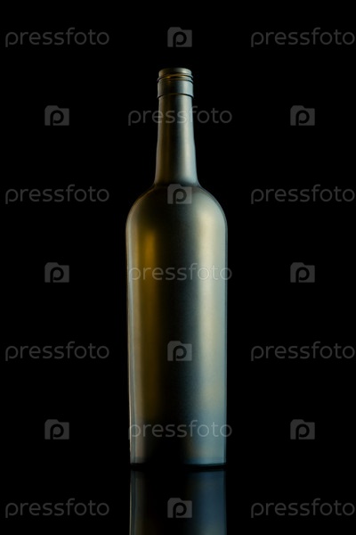 Пустая открытая матовая бутылка вина на черном фоне. Студийный снимок. Вертикальный