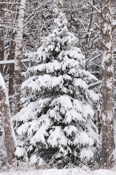 Большая ель покрытая снегом