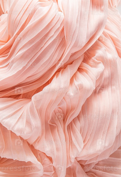 Нежные воздушные волны шелковой ткани персикового цвета. Положите для дизайна. Фоновое изображение для праздничного декора. Цвет 2024 года «Персиковый пушок». Вертикальный вид
