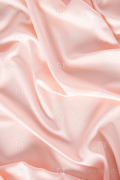 Мягкие складки из атласного текстиля персикового цвета. Роскошный абстрактный текстильный фон. Вертикальный вид. Цвет 2024 года персиковый пушок