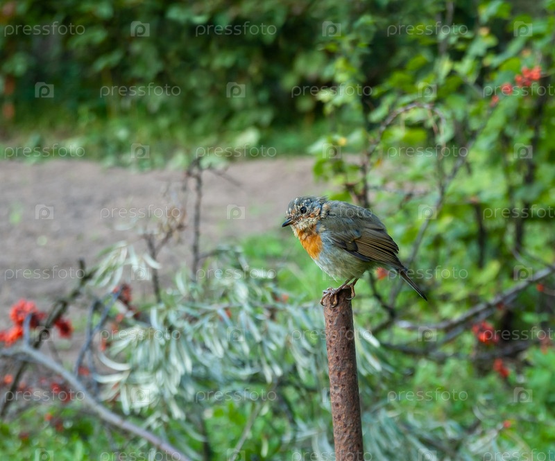 Маленькая птичка Мухоловка (Ficedula parva) осторожно сидит на шее