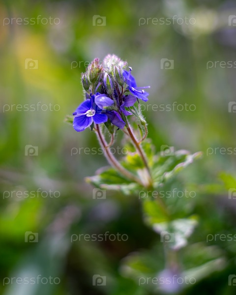 Ярко-синий цветок Вероники Дубравной сфотографирован крупным планом