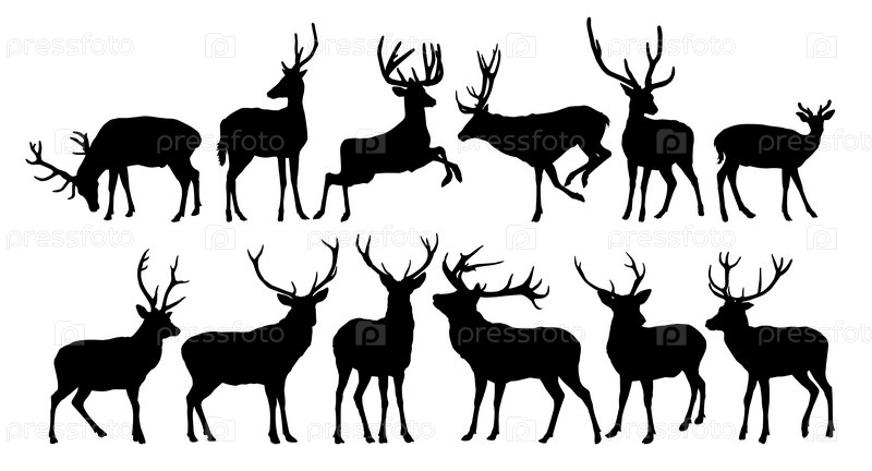 Набор силуэтов лесных оленей