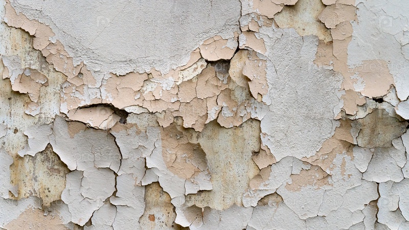 Текстура потертой штукатурки, заготовка для дизайна, серая старая штукатурка падает со стены от старости и влияния погодных условий