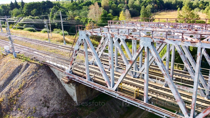 Вид на железную дорогу с высоты. Концепция железнодорожного моста. Логистика железнодорожным транспортом
