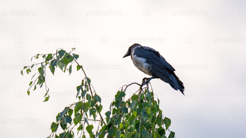 Крупный план вороны на вершине дерева