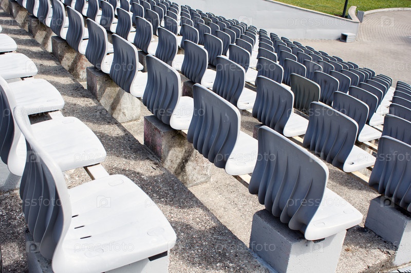 Ряды пластиковых сидений на стадионе