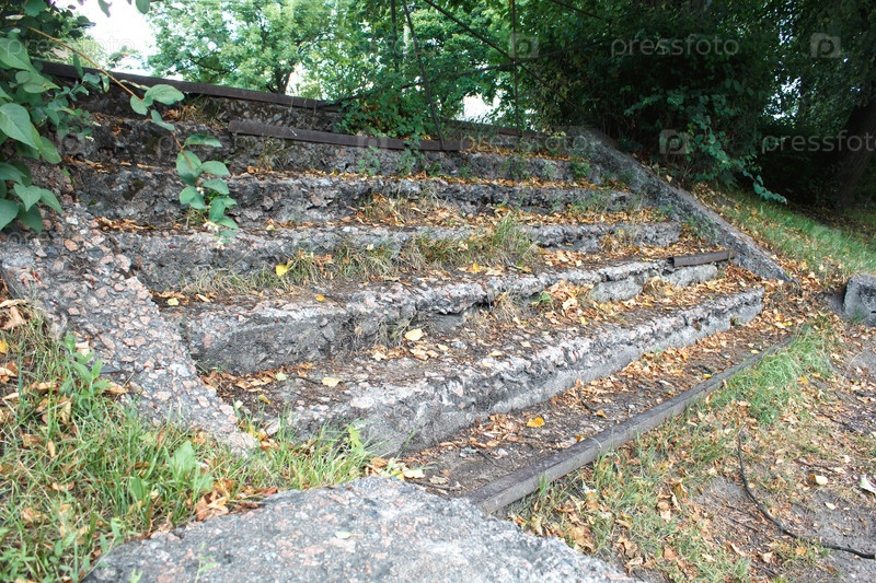 Старая сломанная лестница на городской улице в солнечный летний день