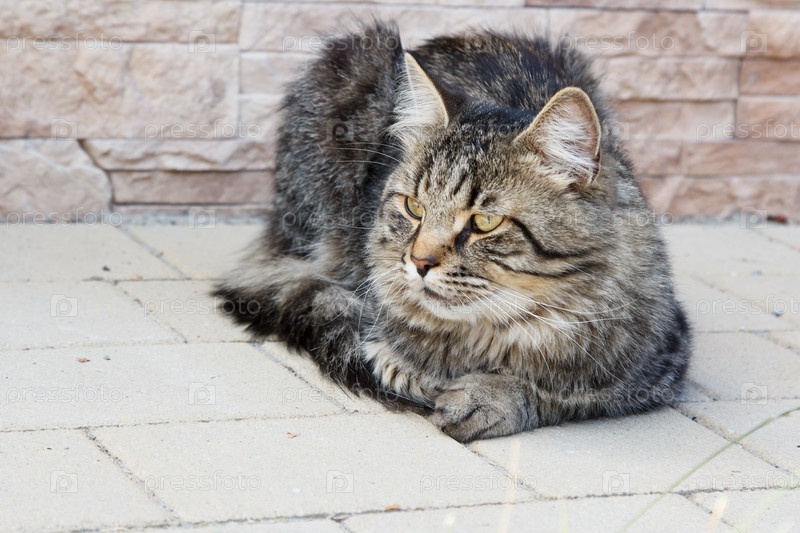 Кот лежит на полу возле открытой двери в солнечный летний день