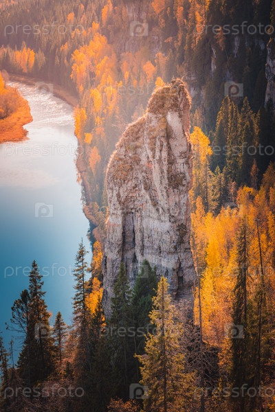 Осенний пейзаж на Усьвинских Столбах, Пермский край. Чертов палец на реке Усьва