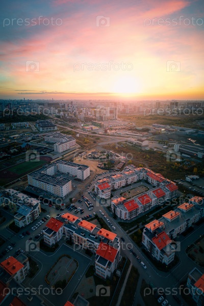 Полет над спальным районом Екатеринбурга на рассвете