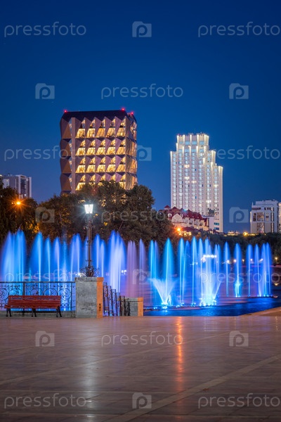 Цветные фонтаны в центре города Екатеринбурга ночью