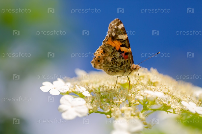 Бабочка на белом цветке