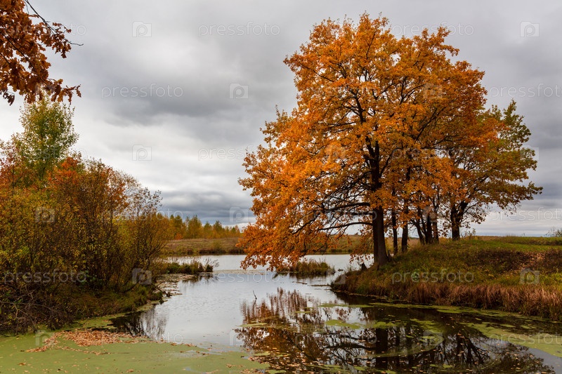 Осенние дубы на берегу озера