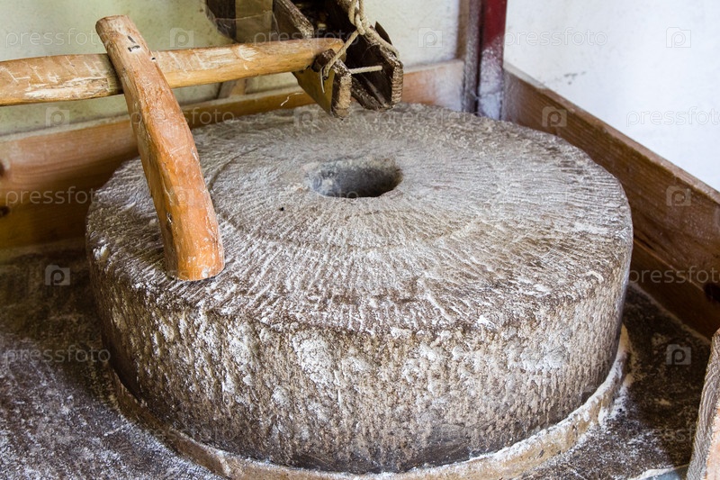 Ручной жернов на маленькой деревенской мельнице в Аджарии