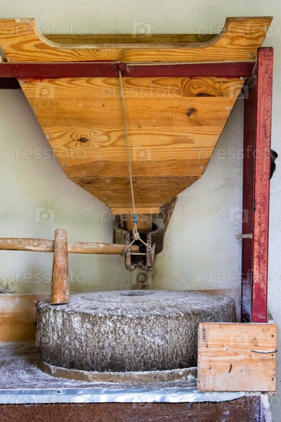 Небольшая сельская мельница с ручным жерновом в деревне