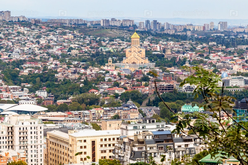 Вид на город Тбилиси с собором Святой Троицы
