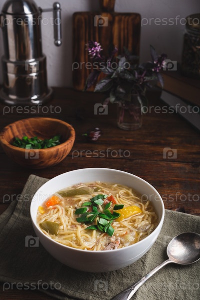 Суп-лапша с утиным мясом и овощами
