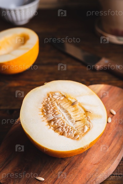 Половина сладкой желтой дыни
