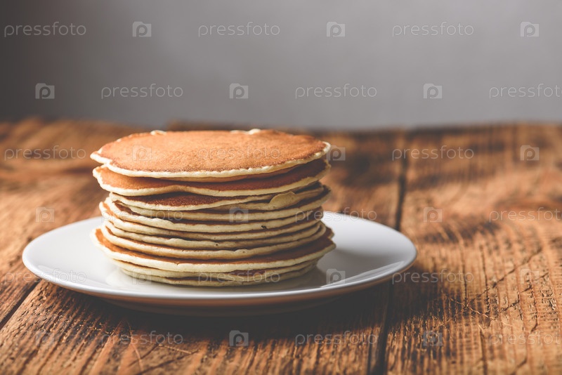 Стопка американских блинов на белой тарелке