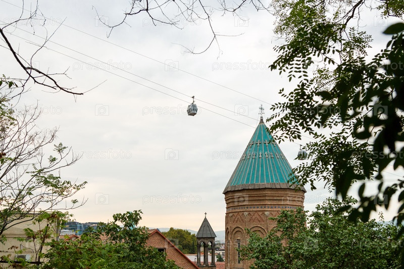 Канатная дорога над куполом армянской церкви в Тбилиси
