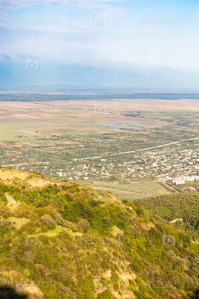 Заросший склон горы и вид на Алазаньскую долину
