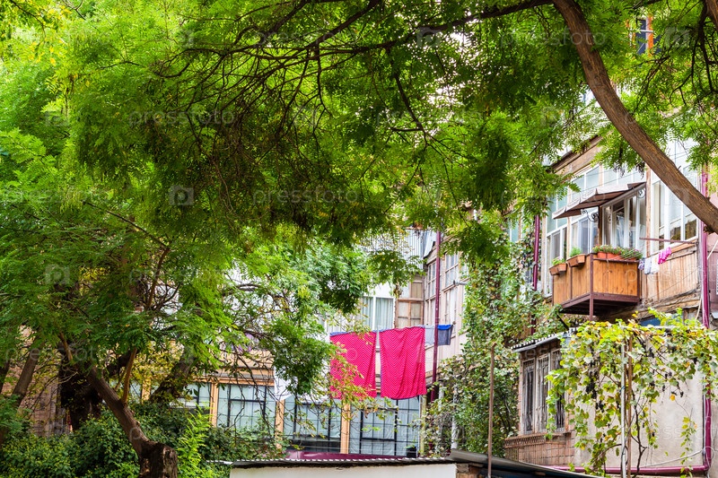 Рен акации и городской двор в городе Тбилиси