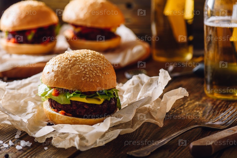 Чизбургер на крафт-бумаге