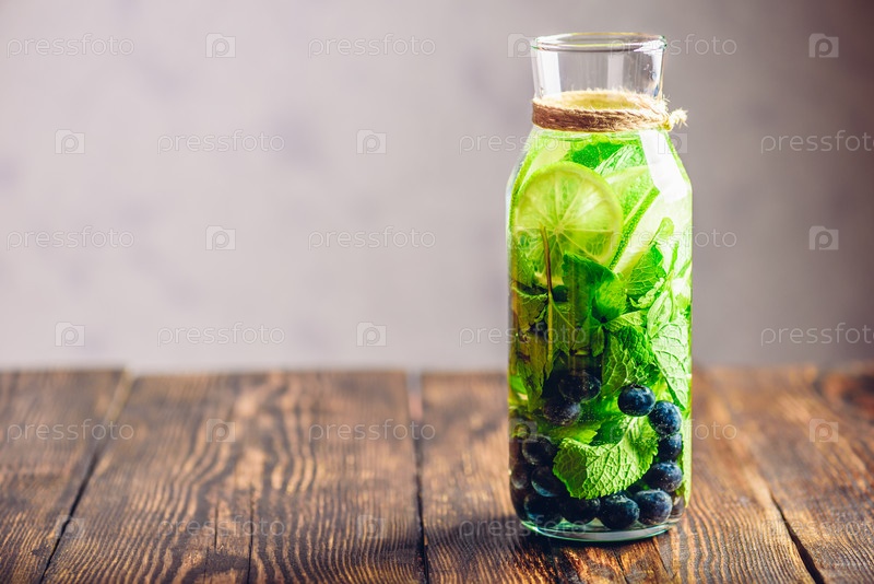 Бутылка воды с лаймом, мятой и черникой