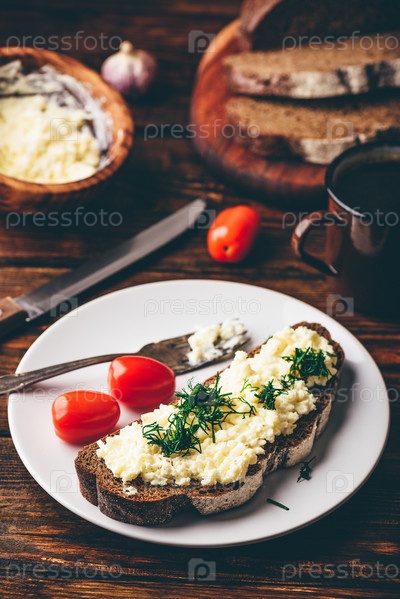 Тост с плавленым сыром, чесноком и укропом