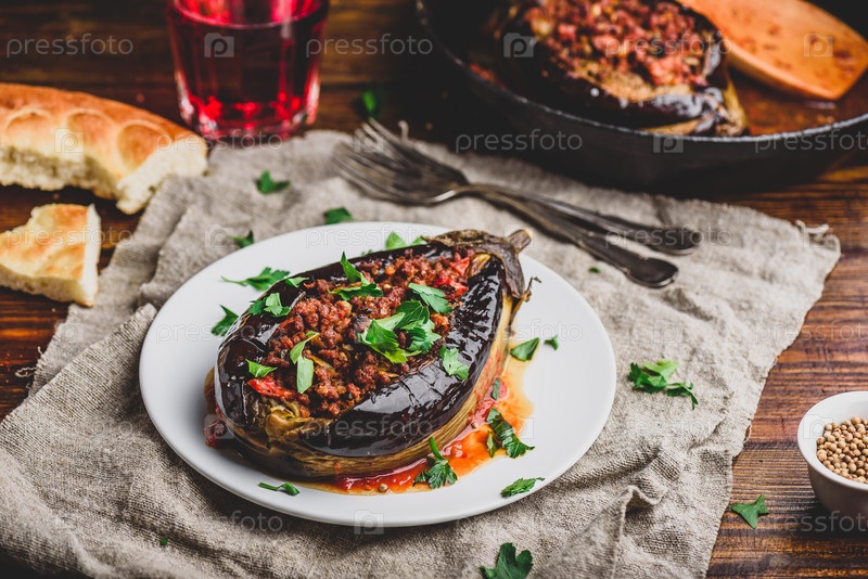 Баклажаны, фаршированные говяжьим фаршем и помидорами