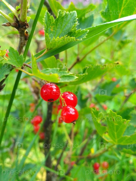 Красная смородина на ветке в саду
