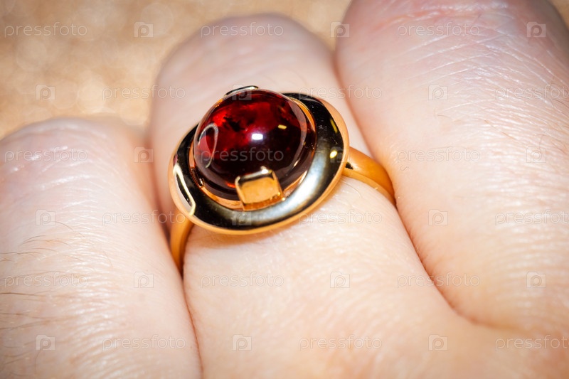 Золотое кольцо с красным янтарем