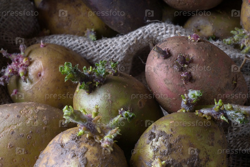 Прорастающий картофель разных цветов, готовый к посадке, выборочный фокус