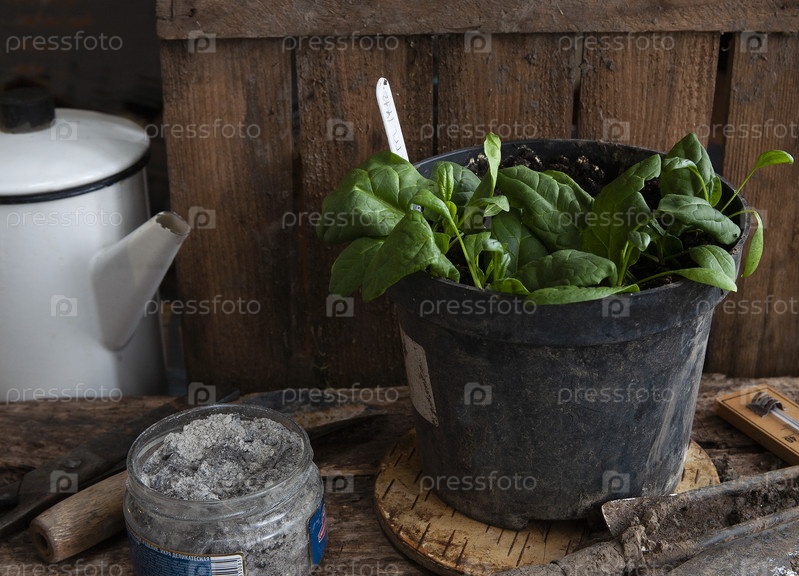 Молодые растения шпината в горшке