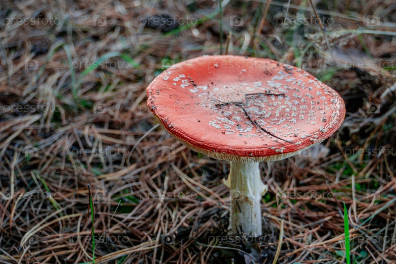 Большой мухомор в лесу